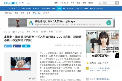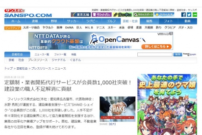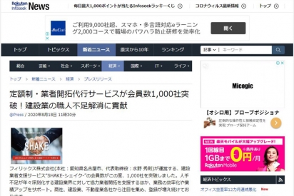 定額制・業者開拓代行サービスが会員数1,000社突破! 建設業の職人不足解消に貢献
